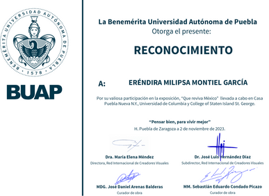 Participación en la exposición, “Que reviva México” llevada a cabo en Casa Puebla Nueva N.Y., Universidad de Columbia y College of Staten Island St. George.